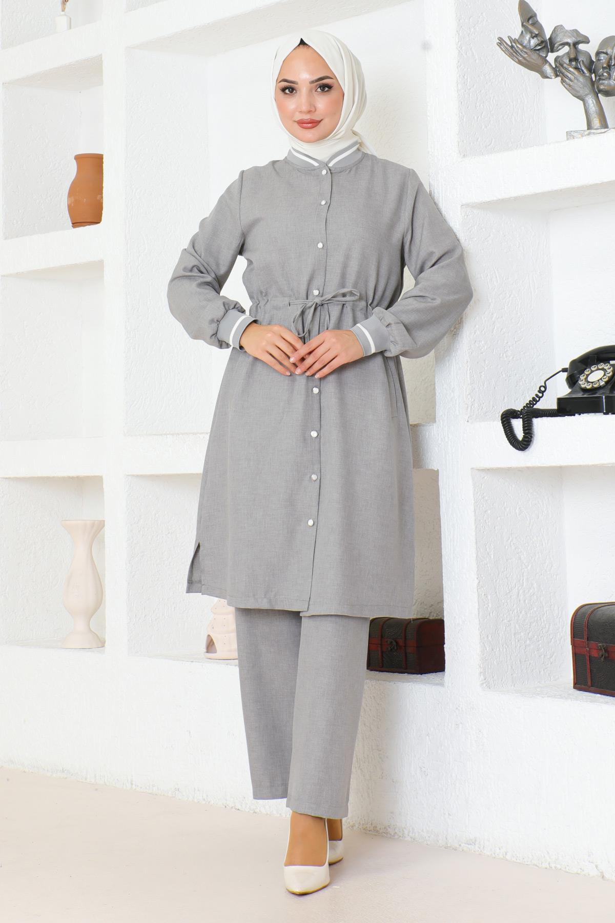 Beli Bağcıklı Ribanalı Takım Gri 19212