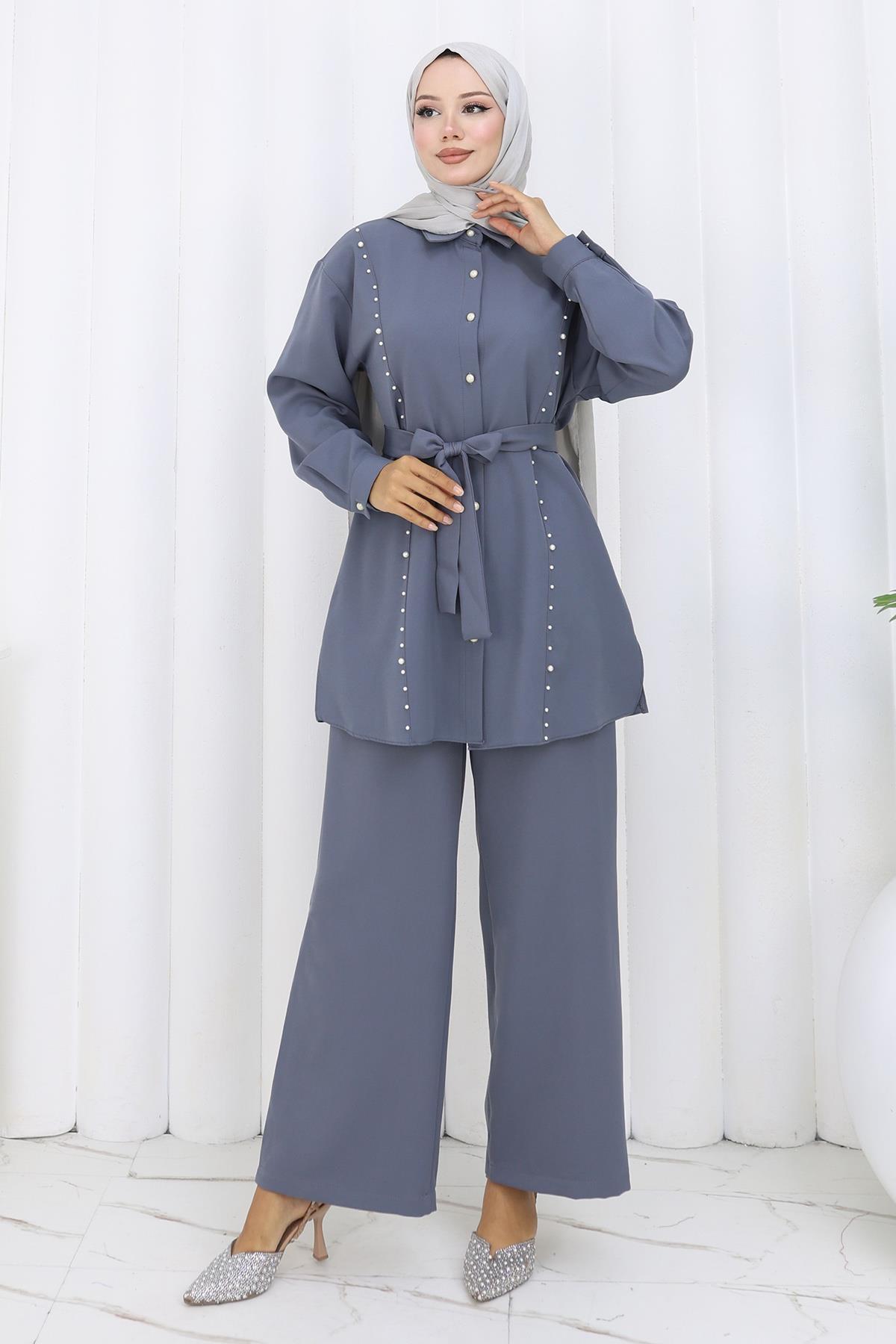 İncili Kuşaklı İkili Takım Gri 19265