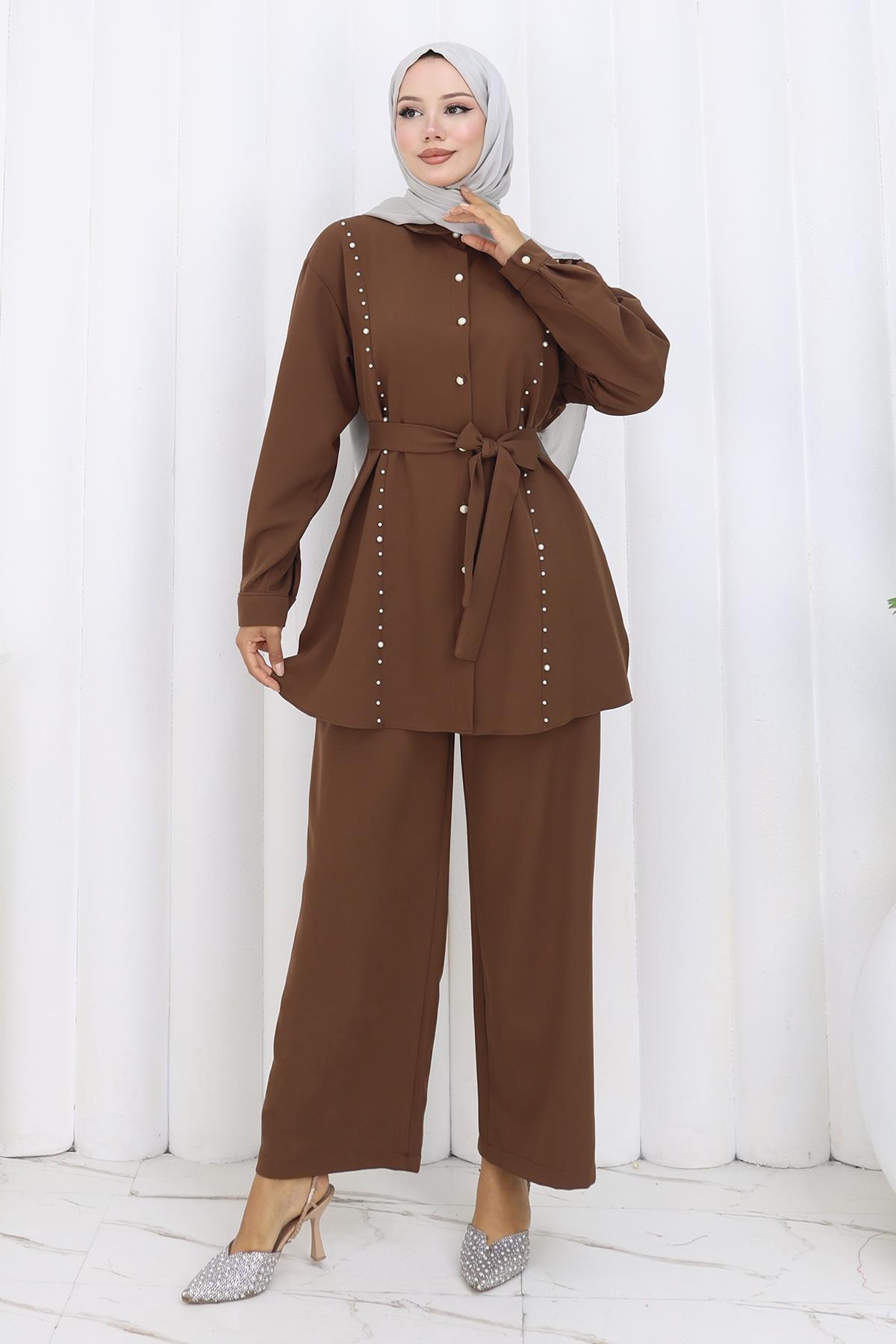 İncili Kuşaklı İkili Takım Kahverengi 19265