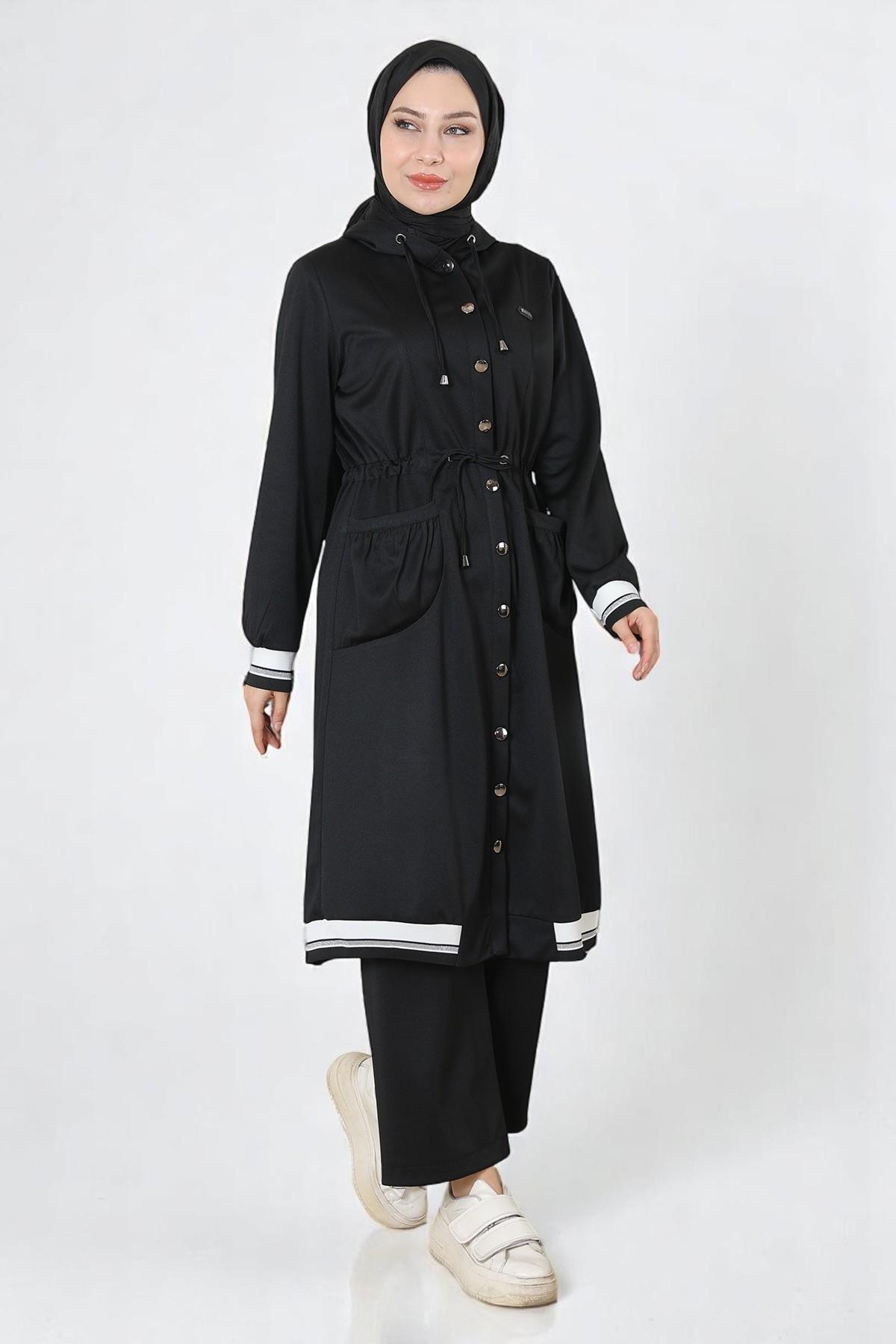 Ürün Özelliği : Yeni sezon tesettür moda ürünüdür. Astarsızdır. Tunik, önden kullanılabilir düğmeleri bulunmaktadır. Manşeti ve eteği ribanalıdır. Beli bağcıklıdır. Cep mevcuttur. Pantolon, beli lastiklidir. Ürün renginde konsept çekimlerinden dolayı ton farklılığı olabilir.