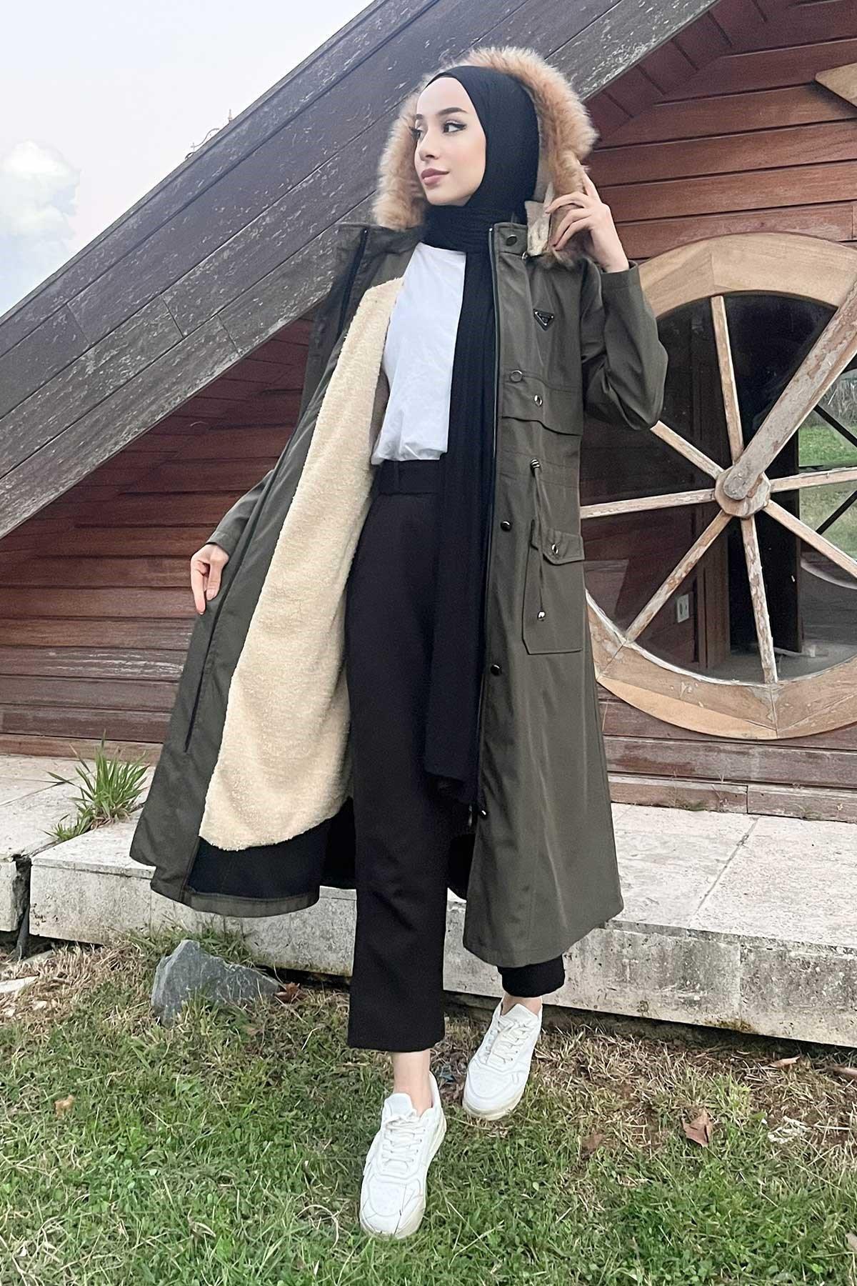 Ürün Özelliği : Yeni sezon tesettür moda ürünüdür. Kürk astarlıdır. Önden kullanılabilir fermuarı bulunmaktadır. Cep mevcuttur. Kapşonu seyyardır. Beli bağcıklıdır. Ürün renginde konsept çekimlerinden dolayı ton farklılığı olabilir.
